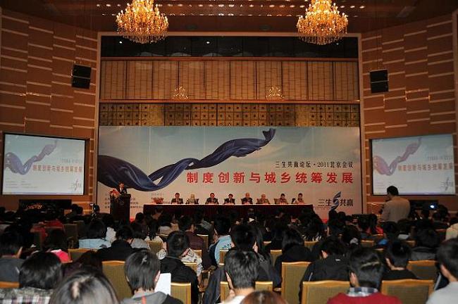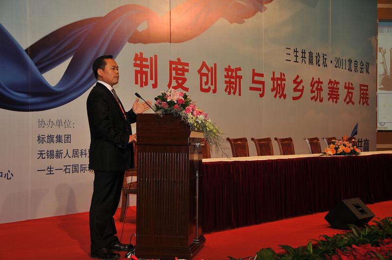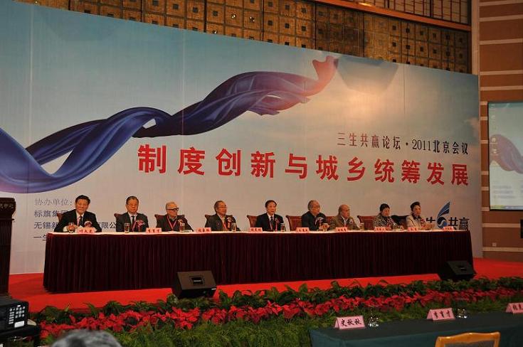 On October 29th, The Sansheng Win-win ?2011 Beijing Conference was held in Beijing. The theme of Forum is "System Innovation and Harmonious Development of Urban and Rural Areas". The Forum was co-sponsored by Beijing Federation of social science circles and China Sustainable Development Research Center of Peking University. The Forum focused on discussing the system innovation on urban and rural development plays an important role and solving the problems faced by urban and rural development from the system innovation dimension. Niu Youcheng, The Standing Committee of Beijing municipal Party committee, The minister of the United Front Department attended the forum and delivered a speech.